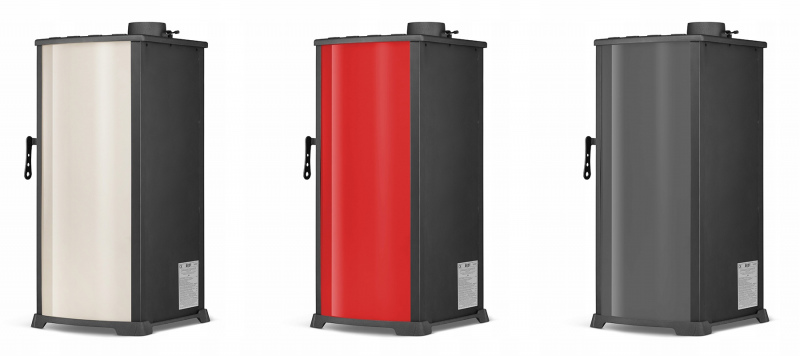 Боковые эмалированные вставки печи могут быть окрашены в бежевый, серый или красный цвет.