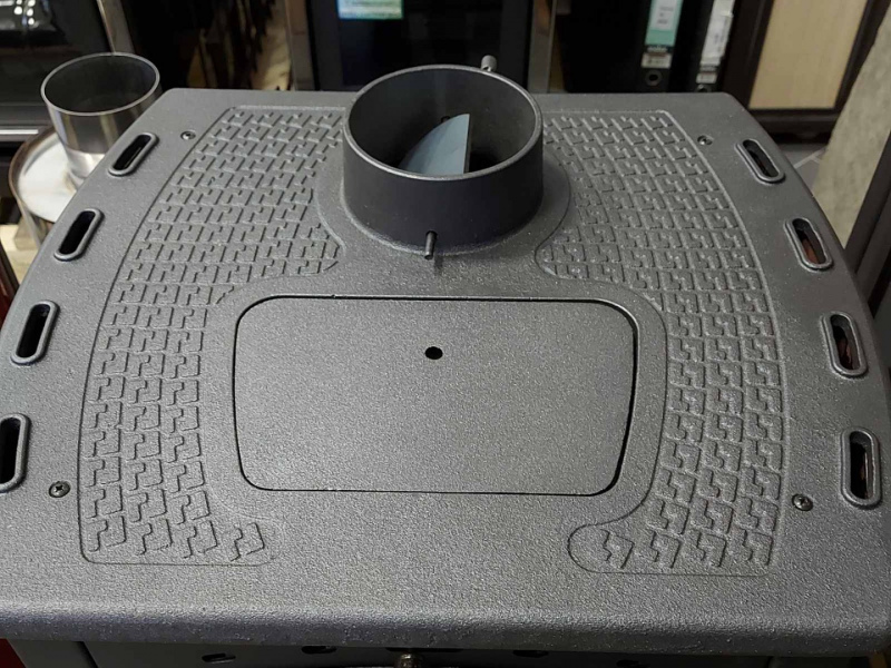 Верхняя чугунная панель может использоваться для разогрева или приготовления пищи. Она имеет съемную панель трапециевидной формы, которая служит конфоркой, а также снимает термическое напряжение с верхней чугунной крышки печи.