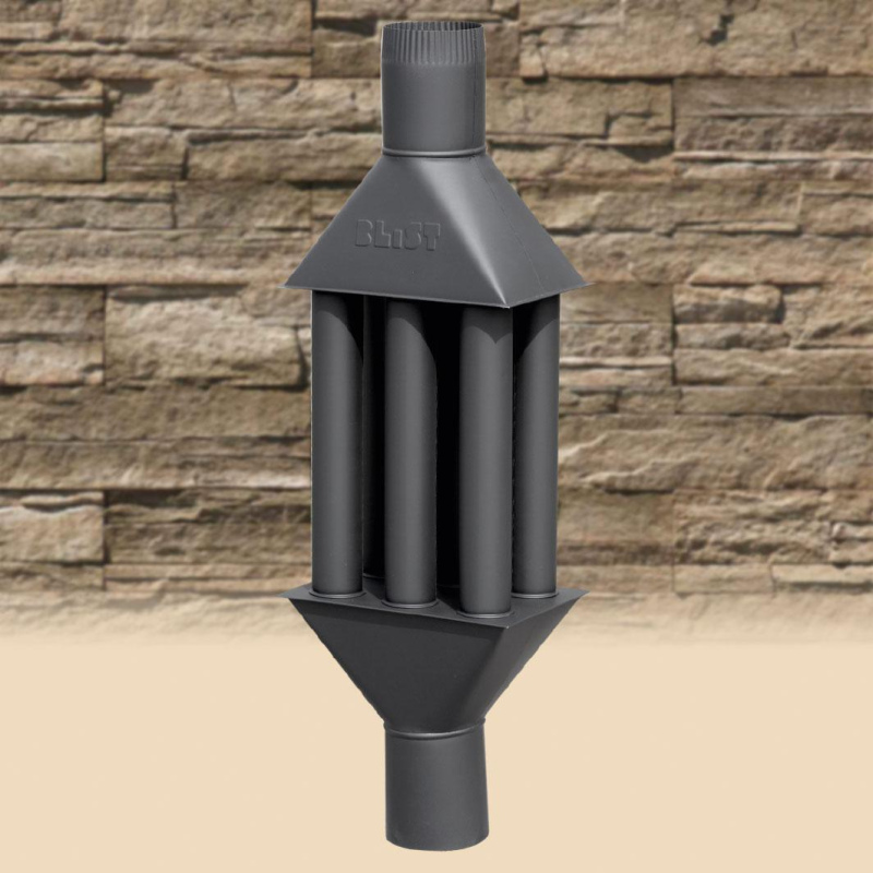 Экономайзер Blist служит для увеличения эффективности отопления путем снятия дополнительного тепла с дымовой трубы. Экономайзер значительно увеличивает площадь поверхностей нагрева, поскольку тепло снимается не с одной трубы, а с 6ти труб меньшего диаметра. За счет этого экономит до 30% энергии.