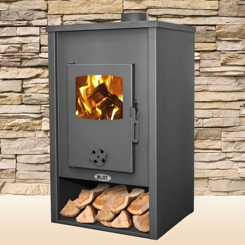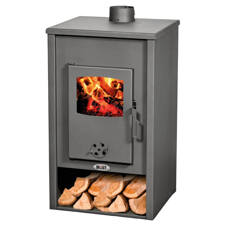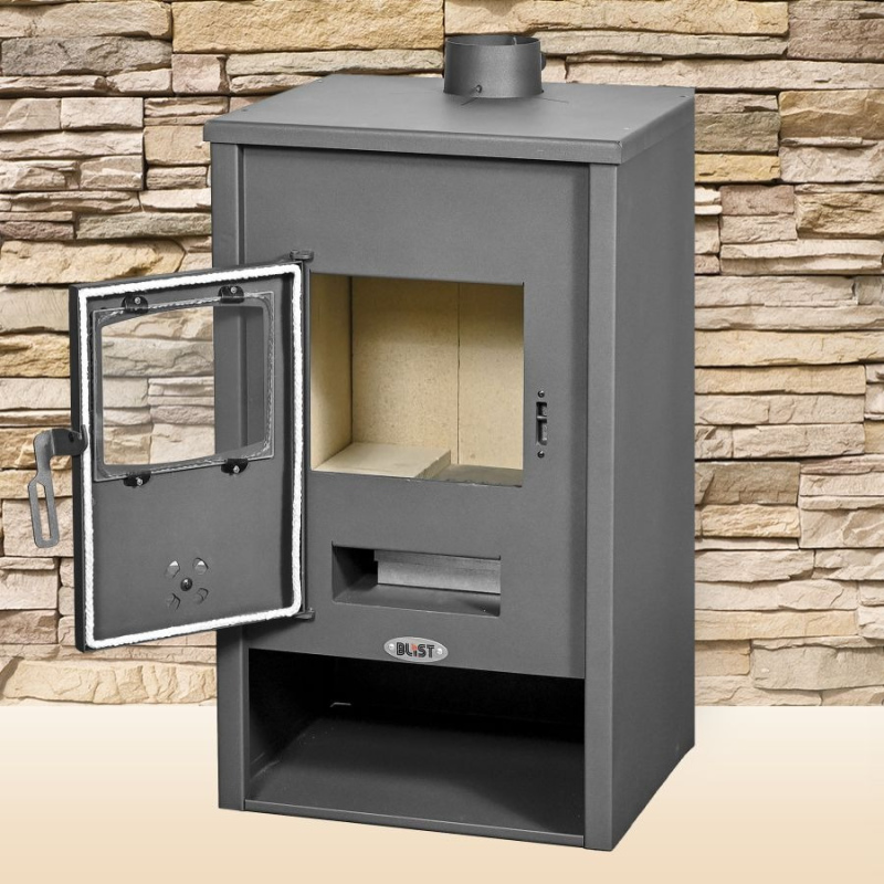 Печь-камин Blist Padova изготовлена из стали, а топочная камера выложена белым огнеупорным шамотом.